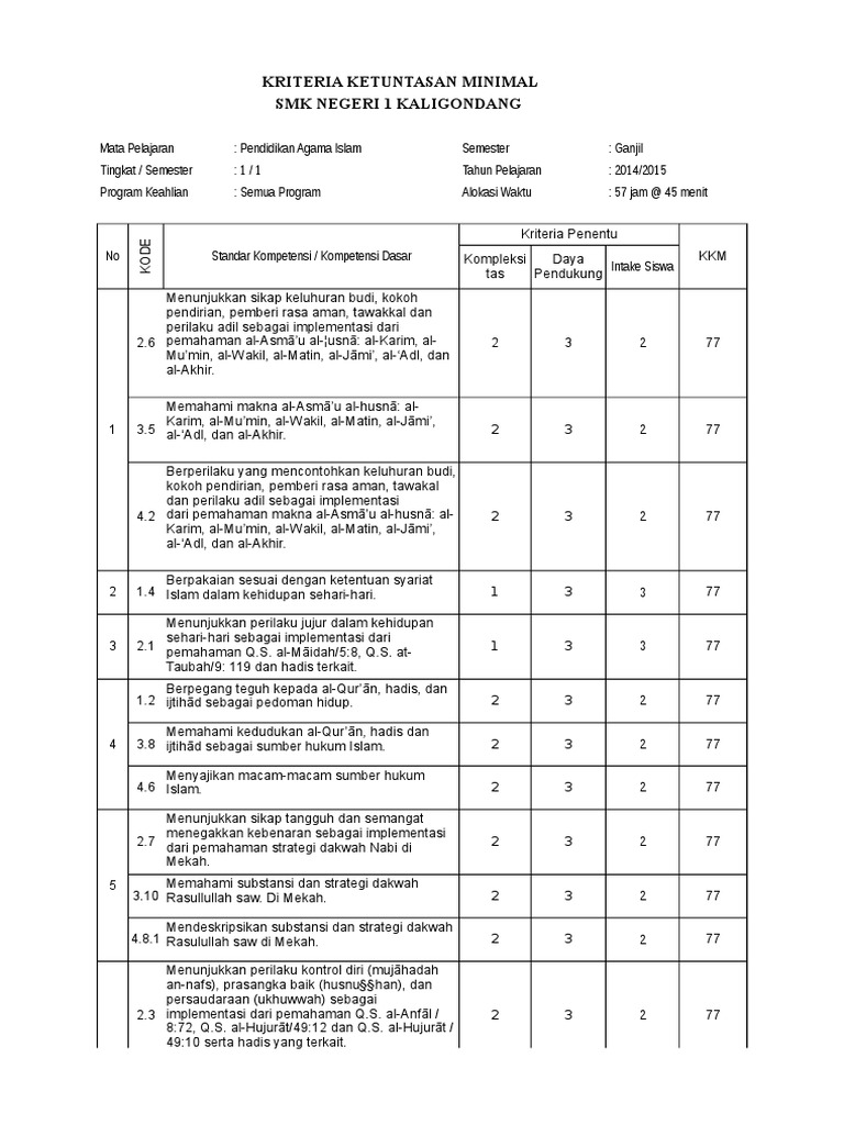 Semoga artikel ini dapat memberikan manfaat bagi yang memerlukan, terimakasih atas. Perangkat pembelajaran lengkap rpp smp, sd dan sma ktsp rpp ktsp terlengkap bisa diedit yang ditujukan untuk guru kelas dan bidang studii semua mata pelajaran administrasi ktsp sd kelas i, ii, iii, iv, v, vi. Download kkm mapel pai komplit. Kkm sk pertama ditetapkan 78. Demikian kkm pai kelas 1 2 3 4 5 6 jenjang sd/mi kurikulum 2013 revisi 2018 yang bisa saya bagikan, semoga bermanfaat. Nilai = ( jumlah skor : untuk siswa yang belum memenuhi syarat nilai sesuai kkm maka diadakan remedial. Administrasi guru program semester kelas 6 k13 revisi. Tidak lupa saya sampikan bahwa rpp kelas 6 sd/mi kurikulum 2013 revisi 2020 format 1 lembar ini saya simpan dalam folder dalam bentuk rar, untuk membuka folder tersebut bapak/ibu guru perlu mengekstraknya. Bahan ajar pai kelas x (semester 1 dan 2) 2. Ini merupakan salah satu bagian yang paling penting dalam dunia pendidikan untuk menentukan seberapa baik kualitas dari murid tersebut di setiap mata pelajaran yang diberikan oleh. Kkm harus ditetapkan diawal tahun ajaran oleh lembaga satuan pendidikan berdasarkan hasil. Jika kalian sudah menghafal materi soal ulangan diatas, berikut lanjutan untuk bahan ajar soal ulangan pendidikan agama islam (pai) untuk kelas 6 semester genap.
