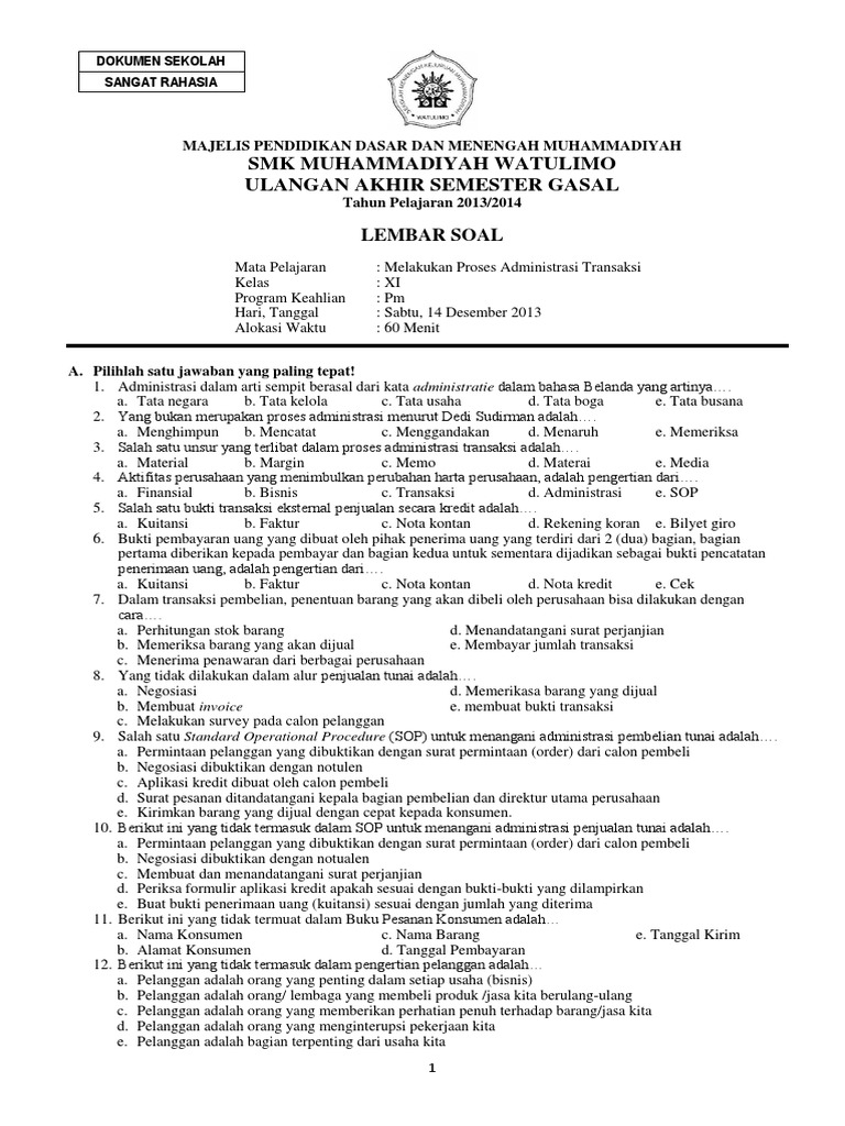 Administrasi Transaksi Xii 4lo5w1zw470x from doku.pub Administrasi yang dikerjakan dalam buku besar dan pembantu buku besar dari transaksi keuanga perusahaan, disebut dengan administrasi. Administrasi transaksi untuk smk/mak kelas xii. Mampu mengetahui barang yang lakunya lambat (slow moving) serta barang yang lakunya cepat (fast moving), sehingga dapat digunakan sebagai. Download kunci jawaban dan soal soal uts bahasa jawa kelas 12 sma. Berikut kita dibahas kunci jawaban contoh soal untuk latihan menghadapi ulangan tengah semester (uts) atau penilaian tengah semester (pts) materi pendidikan kewarganegaraan (pkn) kelas 12 (xii) sma / ma semester 2 (genap) tahun 2021. Program tahunan mata pelajaran : Pada kesempatan ini saya ingin berbagi soal latihan beserta jawaban asj / administrasi sistem jaringan kelas 12. Ini merupakan salah satu contoh file aplikasi administrasi guru yang baik dan benar sesuai dengan.