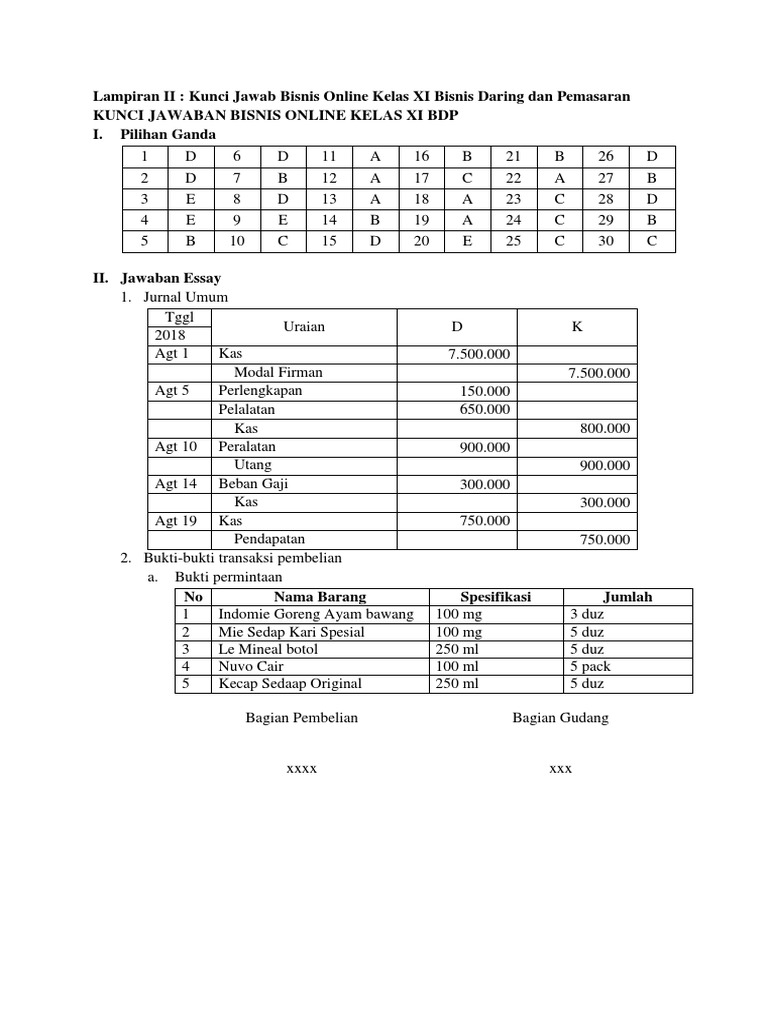 Program tahunan mata pelajaran : Xii satuan namun demikian kunci dari kegiatan pemasaran adalah penjualan. Ini merupakan salah satu contoh file aplikasi administrasi guru yang baik dan benar sesuai dengan. Kunci jawaban memahami prinsip bisnis. Administrasi yang dikerjakan dalam buku besar dan pembantu buku besar dari transaksi keuanga perusahaan, disebut dengan administrasi. Bagi kamu anak ips, pastinya pelajaran sejarah menjadi salah satu pelajaran yang difavoritkan. Xabili indo kunci jawaban mandiri biologi kelas 10. Proses penjualan yang cepat serta tepat sehingga pelanggan tidak perlu menunggu lama dan kesalahan penghitungan dapat dihilangkan. Penjas (kadang disebut penjaskes, orkes) atau pendidikan jasmani adalah mata pelajaran untuk melatih kemampuan psikomotorik yang mulai berikut efyei akan menjabarkan kumpulan contoh soal penjas kelas 12 (xii) pilihan ganda dan essay lengkap berserta jawaban. Contoh soal dan jawaban dokumen. Kunci jawaban bahasa indonesia halaman 18 kelas 12 semester 2. Administrasi transaksi untuk smk/mak kelas xii. Administrasi transaksi adalah kegiatan pencatatan perusahaan pada setiap terjadinya perubahan posisi keuangan (transaksi) yang dilakukan secara terstruktur dengan administrasi transaksi untuk smk/mak kelas xl.